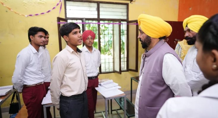 ਪੰਜਾਬ ਦੇ ਮੁੱਖ ਮੰਤਰੀ ਭਗਵੰਤ ਸਿੰਘ ਮਾਨ ਨੇ ਅੱਜ ਕਿਹਾ ਕਿ ਸੂਬਾ ਸਰਕਾਰ ਨੌਜਵਾਨਾਂ ਦੇ ਸੁਨਹਿਰੀ ਭਵਿੱਖ ਲਈ ਲਗਾਤਾਰ ਯਤਨਸ਼ੀਲ ਹੈ। ਉਹ ਅੱਜ ਸ਼ਹੀਦ ਸੂਬੇਦਾਰ ਮੇਵਾ ਸਿੰਘ ਸਕੂਲ ਆਫ਼ ਐਮੀਨੈਂਸ ਵਿੱਚ ਵਿਦਿਆਰਥੀਆਂ ਨਾਲ ਮਿਲਣ ਪਹੁੰਚੇ, ਜਿੱਥੇ ਉਨ੍ਹਾਂ ਨੇ ਕਿਹਾ ਕਿ ਪੰਜਾਬ ਵਿੱਚ ਸਰਕਾਰ ਨੇ ਸਿੱਖਿਆ ਕ੍ਰਾਂਤੀ ਦਾ ਨਵਾਂ ਯੁੱਗ ਸ਼ੁਰੂ ਕੀਤਾ ਹੈ।