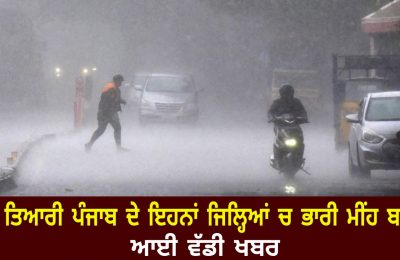 ਪੰਜਾਬ ਚ ਲਗਾਤਾਰ 3 ਦਿਨ ਮੀਂਹ ਪੈਣ ਬਾਰੇ ਮੌਸਮ ਵਿਭਾਗ ਵਲੋਂ ਜਾਰੀ ਹੋਇਆ ਅਲਰਟ