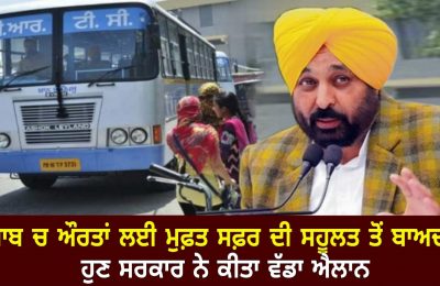 ਪੰਜਾਬ ਚ ਫਰੀ ਸਫ਼ਰ ਕਰਨ ਵਾਲੀਆਂ ਬੀਬੀਆਂ ਲਈ ਆਈ ਵੱਡੀ ਖੁਸ਼ਖਬਰੀ , ਸਰਕਾਰ ਨੇ ਲਿਆ ਵੱਡਾ ਫੈਸਲਾ